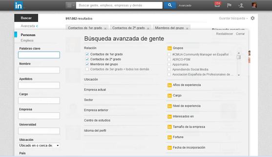 Yo quiero ser capaz de tener grandes éxitos de orden descendente o número de conexiones compartidas. No puedo, y es que, una vez más, LinkedIn ofrece la búsqueda de personas solo cuando quiero también la Búsqueda en la Red.